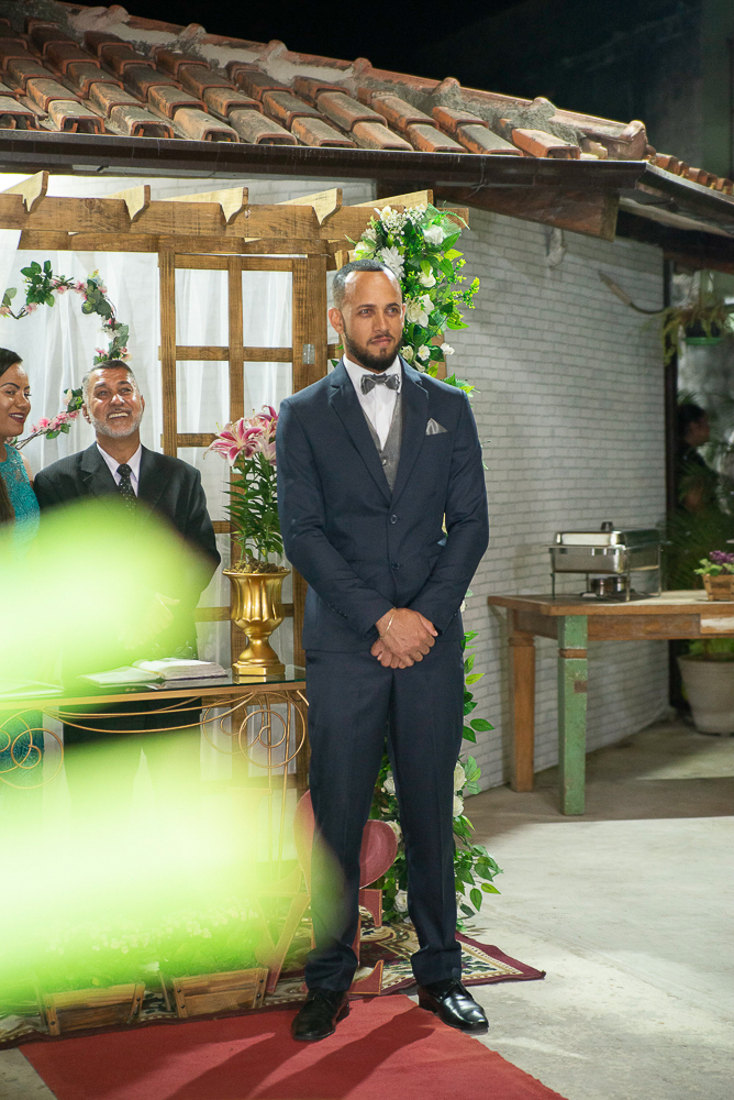Com a entrada da florista o tapete ficou perfumado com lindas rosas, era o que faltava para o início do grande espetáculo, a expectativa e a emoção do noivo foi registrada, cada momento, cada expressão tudo captado por nossas lentes, sendo que a emoção aflorou com a entrada da noiva com cantos evangélicos num lindo espetáculo.