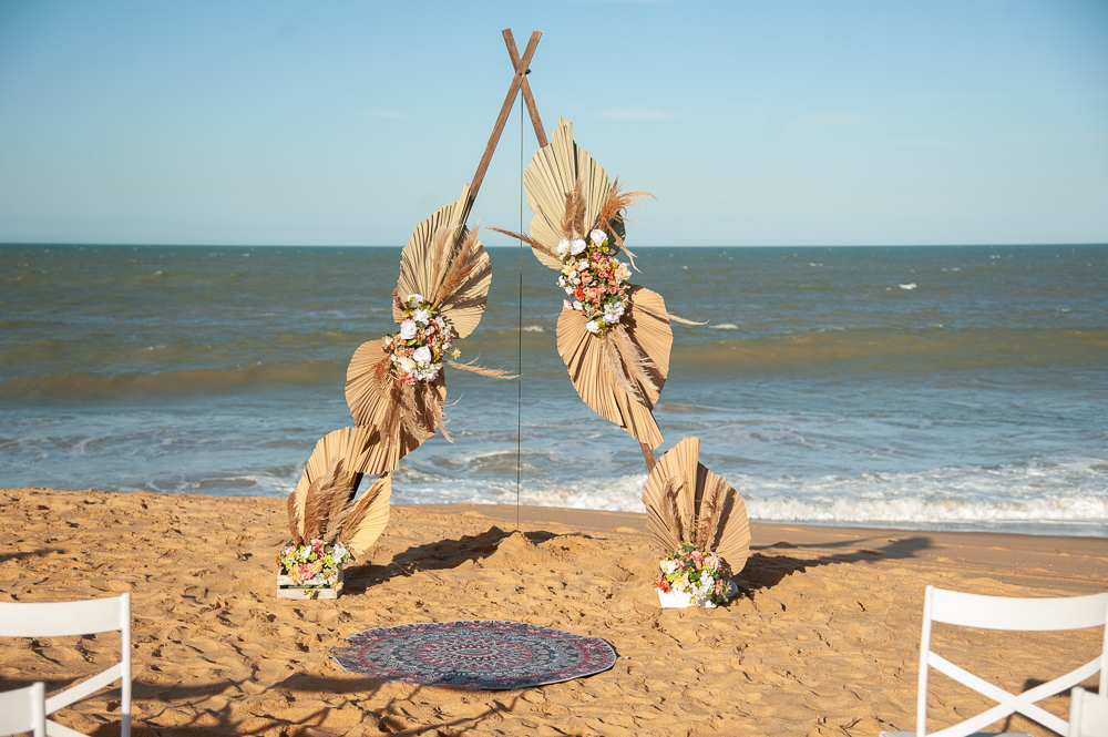 O cenário maravilhoso deste casamento na praia à tarde e num por do sol de tirar o folego.