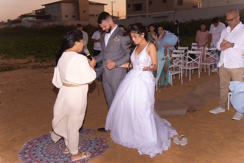 Celebração ocorreu em clima de forte emoção, registrando cada expressão, cada olhar do casal, do início ao fim, e no final aquele lindo beijo do casal tendo ao fundo o visual deslumbrante do mar.